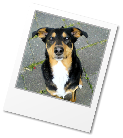 His fur was black and tan with a white spot on the chest. His tail curling upwards. Now we had to give it a name. Being